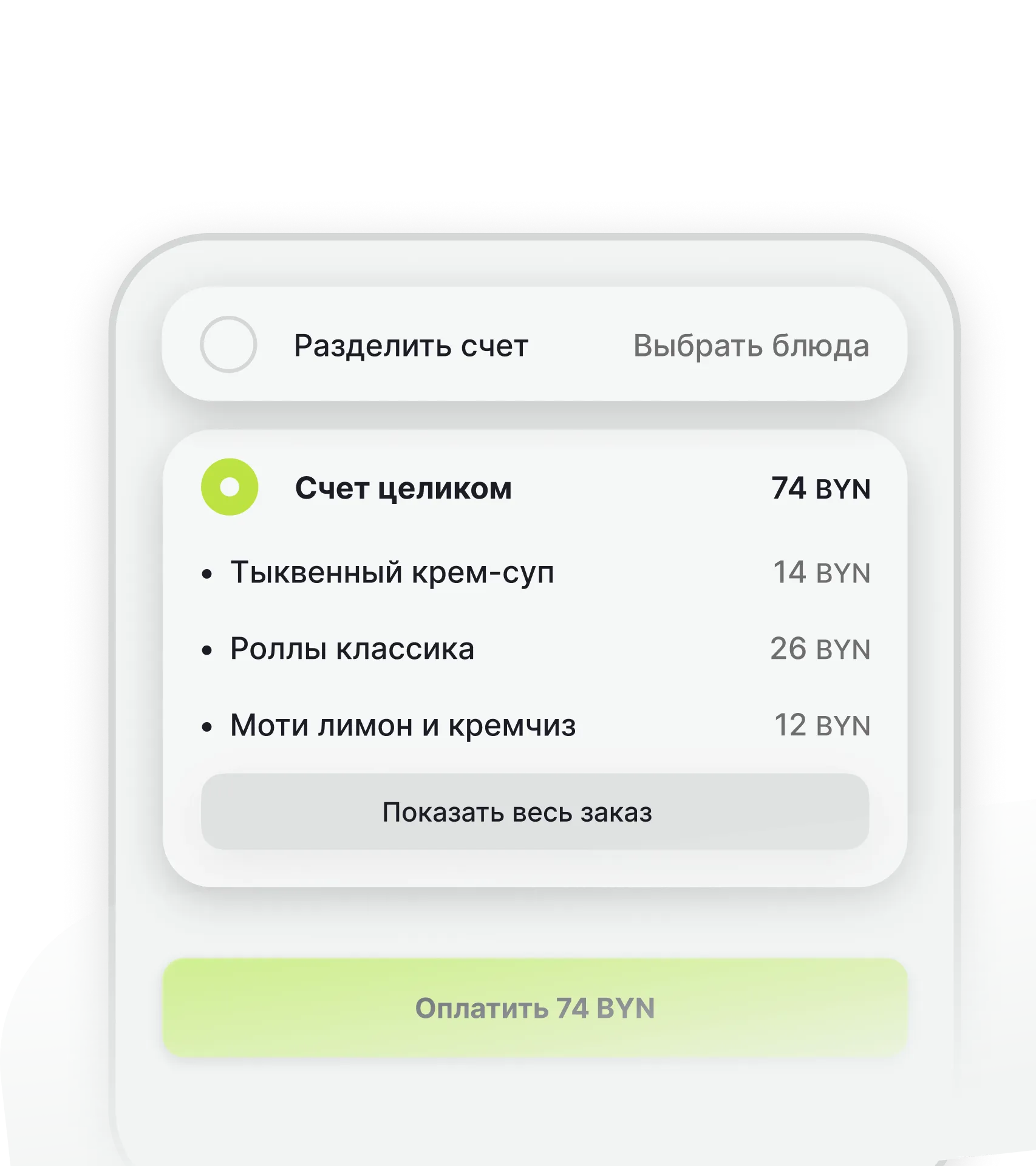 Оплата и разделение заказа